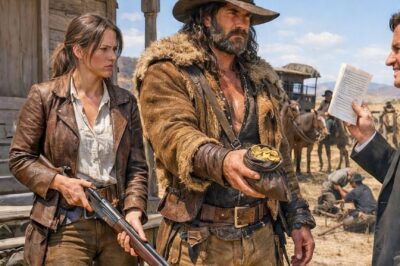 Two crude eyeholes had been cut into the feed sack. Nothing more. No veil. No bonnet. Just rough brown fabric tied at the neck with twine, transforming her into something anonymous and humiliated and grotesque by design. Men in the crowd pointed and laughed openly. Someone barked like a dog. Someone else called, “Turn her around, Cooper, let’s see if the backside is less cursed than the front.”