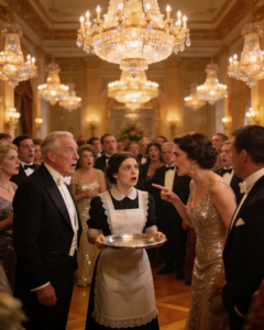 She had been working silently all evening—refilling glasses, clearing plates, making herself almost invisible.