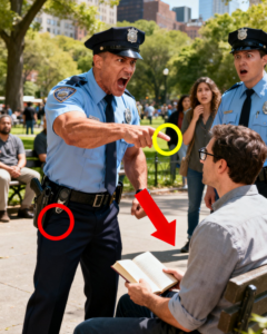 “Don’t play lawyer with me, pal,” Miller snarled, stepping closer, his face turning a dangerous shade of red. “I said I want your ID. We’ve had burglaries in this area and you’re sitting here looking suspicious. Now hand it over or things are going to get very uncomfortable for you.”