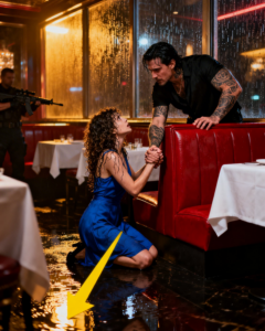 He rose slowly, his towering frame casting a long shadow over her kneeling form. The entire restaurant held its breath. He circled the table, his movements utterly silent, and stopped before her. Then he crouched, bringing his face level with hers. The scent of expensive cologne and something uniquely masculine, something dangerous, enveloped her.