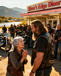 Across the street, nearly twenty motorcycles rolled into the parking lot of a roadside diner.