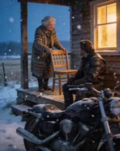He removed his helmet and walked toward the porch with the same quiet stride she remembered.
