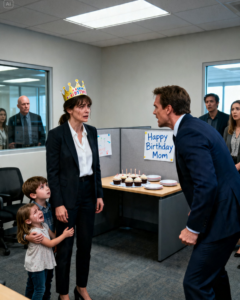 But at 9:12 a.m., standing in the cramped break room of Westbridge Logistics in downtown Chicago, Emily did not know any of that yet. She only knew that her daughter Lily was carefully placing a crooked paper crown on her head while her son Jake held a box of store-bought cupcakes like it was the most important thing in the world.