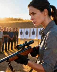 A few people nearby noticed. The noticing produced the specific quality of attention people give to someone who has arrived at the front of a situation without the credentials the situation seemed to require. She had no visible background, no introduction connecting her to any of the known quantities in the group, no conversation with anyone present that would have given her an established place in the social map of the afternoon. She was simply a woman stepping forward with a rifle, and the assumptions a few people in the group were already forming about what was going to happen next came with that.