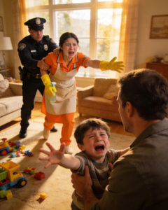 “Tommy, not now, buddy,” James said gently, distracted by the officers and the accusation hanging in the air.