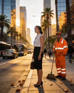 The man I had seen sweeping the streets—wearing a faded orange uniform, hands dusted with dirt—was gone.