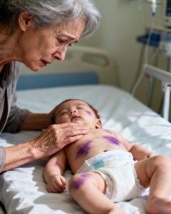 “My grandson,” I said breathlessly. “He won’t stop crying—and there’s a bruise on him. He’s only two months old.”