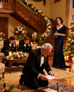 The lights were on inside. I could see them through the narrow glass panel beside the door. Warm yellow light spilling over the entryway table my mother decorated for every holiday. I heard dishes clinking, chairs scraping, laughter rising and falling in the background, the soft rhythm of a family already underway.