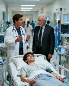 Rain followed me inside on the shoulders of my coat, and the hospital air smelled like antiseptic and stale coffee. The fluorescent lights were harsh, bleaching every color into something sickly pale.