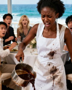 It struck the ceramic floor with one sharp clatter, and the gravy—warm, brown, silky a second earlier—splashed across my apron, my hands, and the pale tile my mother liked to describe as “clean enough to eat off of.”